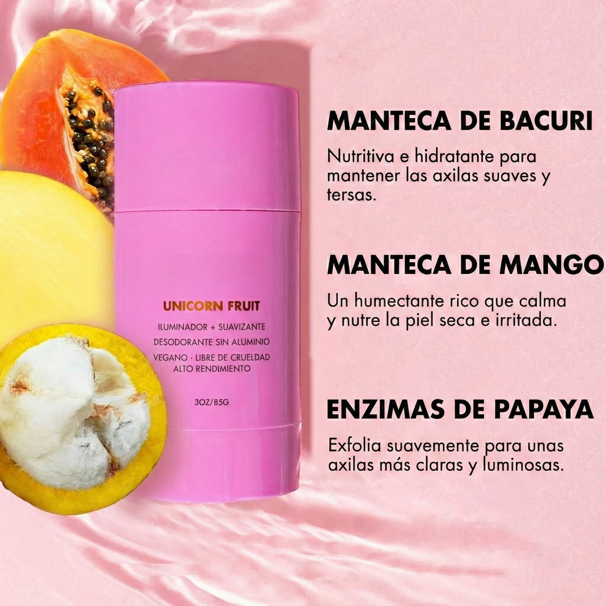 Nuestro desodorante actúa en las capas superficiales de la piel con ingredientes naturales que reducen la melanina responsable de las manchas oscuras. Su fórmula promueve la renovación celular, unifica el tono y restaura la hidratación natural, manteniendo el equilibrio de tu piel de forma suave y efectiva.